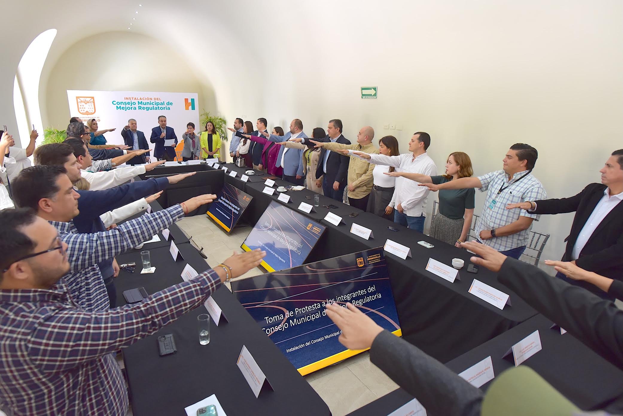 Como parte de las acciones para reducir y simplificar los trámites a favor de nuevas inversiones en Hermosillo, tomaron protesta las y los integrantes del Consejo Municipal de Mejora Regulatoria, en un acto presidido por el presidente municipal Antonio Astiazarán Gutiérrez.