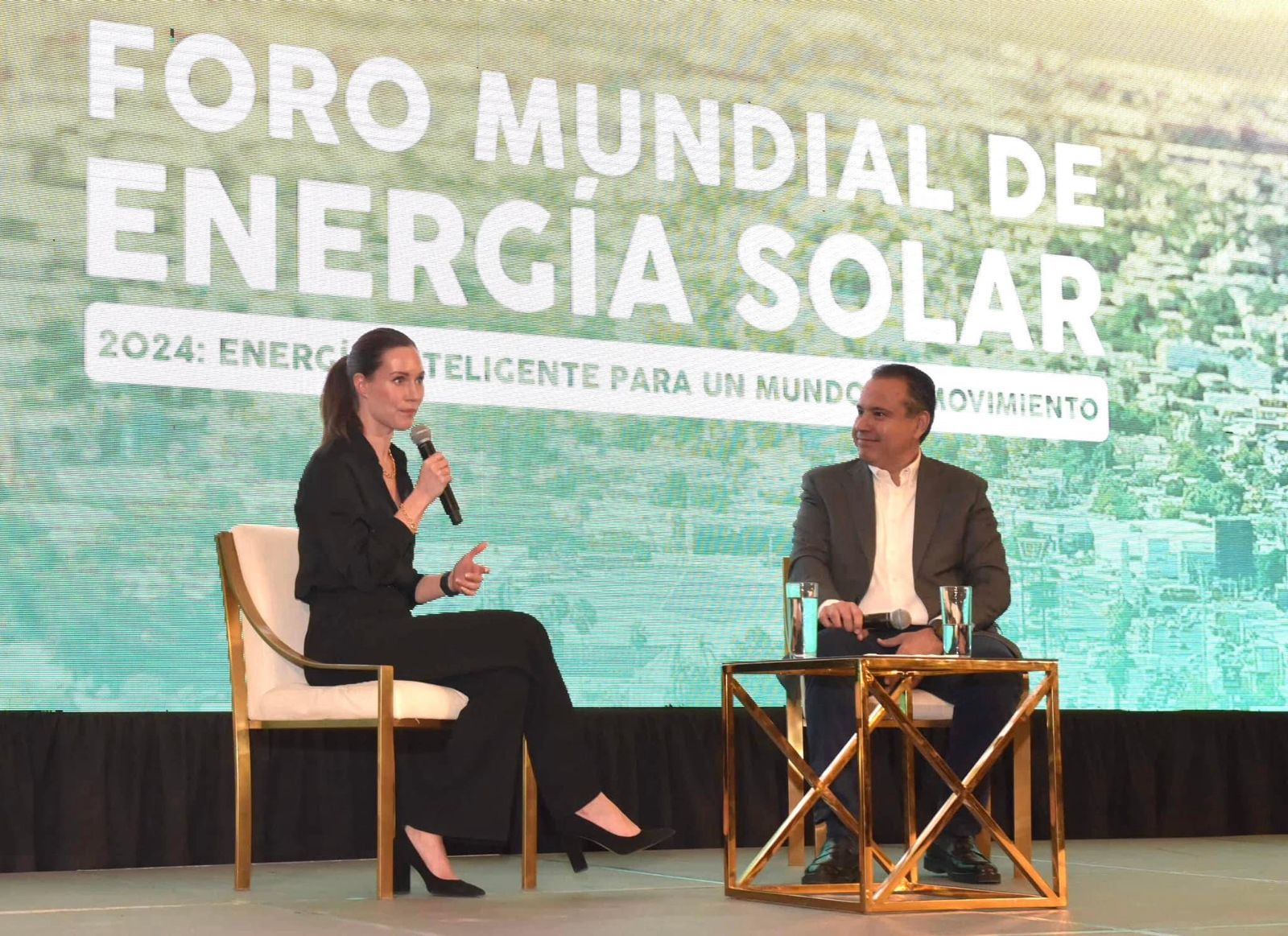 En su calidad de conferencista en el primer día de actividades del Tercer Foro Mundial de Energía Solar, Sanna Marin sostuvo una charla con Antonio Astiazarán, quien le expuso los pormenores de ambas estrategias que promueven el uso de energía solar en la localidad.
