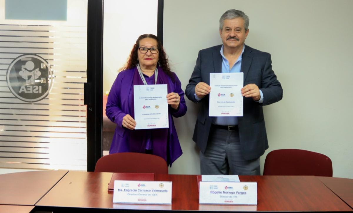 La directora general del ISEA firmó un convenio de colaboración con Rogelio Noriega Vargas, director del ITH, para promover la incorporación del alumnado que así lo desee en las “Brigadas TecNM en Movimiento Nacional por la Alfabetización”, en apego a la agenda estratégica de la presidenta Claudia Sheinbaum y el gobernador Alfonso Durazo, para la reducción del rezago educativo a nivel estatal y nacional.
