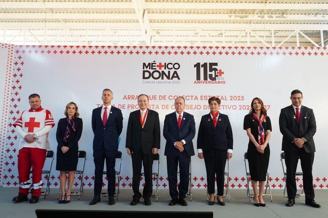 • El mandatario estatal encabezó el arranque de la Colecta 2025 de la Cruz Roja en Sonora, así como el cambio del Consejo Directivo 2025-2027.