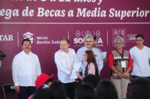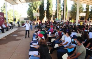 El mandatario hizo entrega de 158 becas del programa Benito Juárez a alumnos de preparatoria de la localidad, a quienes llamó a esforzarse y aprovechar las condiciones de bienestar que se les ofrecen.