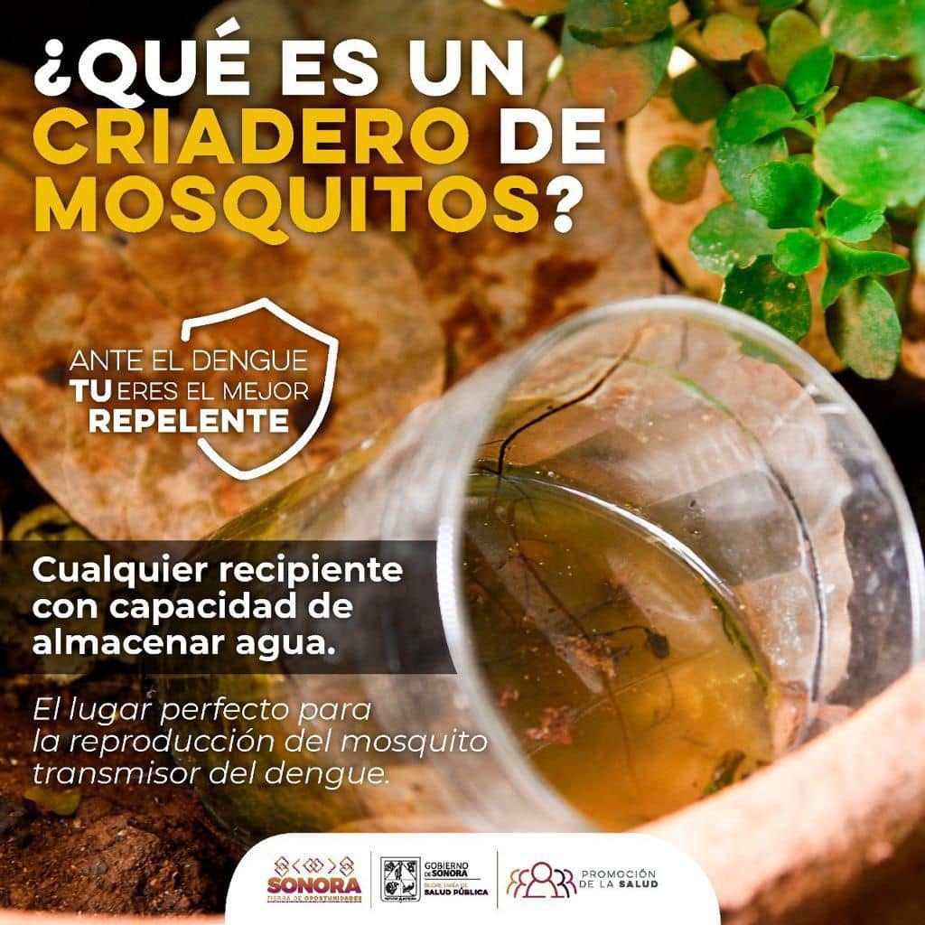 La Secretaría de Salud (SSA) invitó a las y los sonorenses a sumarse a la campaña de eliminación de criaderos de mosquitos, mediante la limpieza de sus patios, para evitar la presencia y transmisión del dengue.