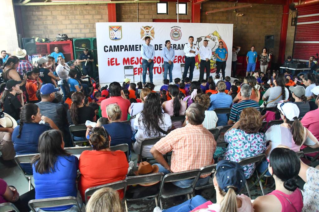 En un ambiente de algarabía infantil las niñas y niños participantes en la décima segunda edición del campamento de verano “El Mejor Bombero eres Tú” protagonizaron una mañana de diversión y camaradería con quienes conforman el cuerpo de Bomberos de Hermosillo.