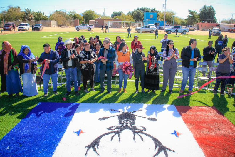 En seguimiento a los trabajos del Plan de Justicia del Pueblo Comca’ac, el Gobierno de Sonora a través de la Secretaría de Desarrollo Social (Sedesson), realizó la entrega de la Cancha Deportiva para beneficio de 329 habitantes de la localidad de El Desemboque de los Seris, municipio de Pitiquito.